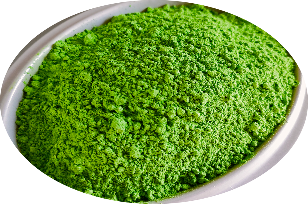 Pandan leaves are pressed until its juices are secreted out. It is then put into the freeze drying machine and pulverized into super fine particle powder.